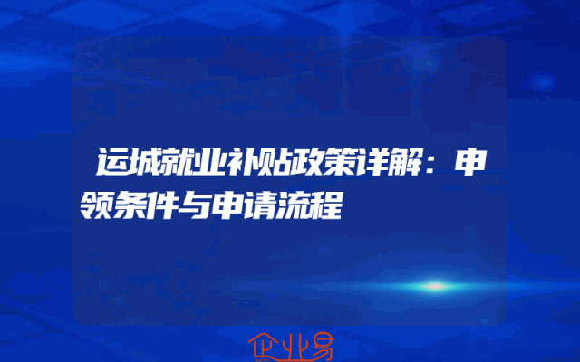 - 运城就业补贴政策详解:申领条件与申请流程
