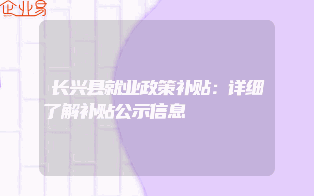 - 长兴县就业政策补贴:详细了解补贴公示信息