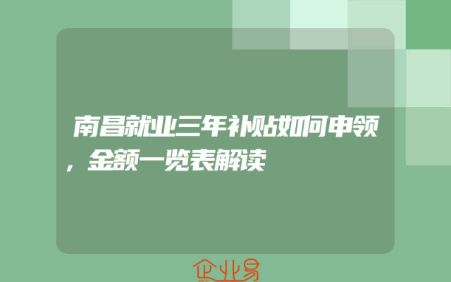 - 南昌就业三年补贴如何申领,金额一览表解读