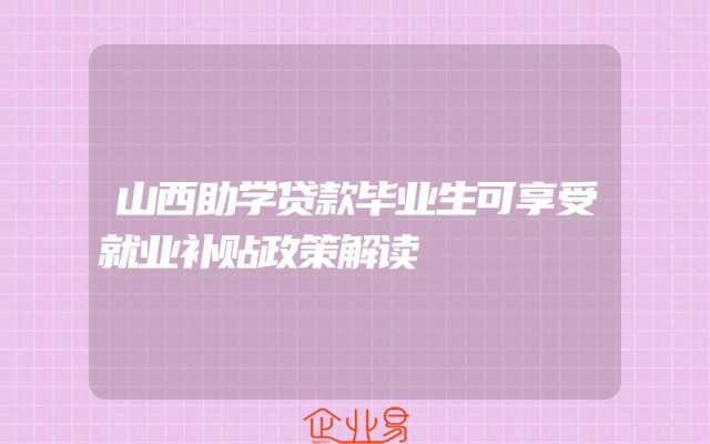 - 山西助学贷款毕业生可享受就业补贴政策解读