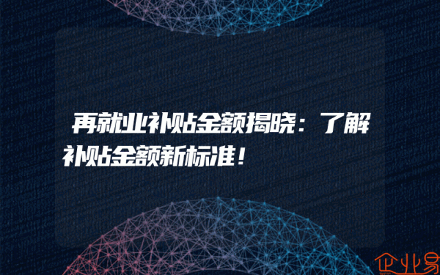 - 再就业补贴金额揭晓:了解补贴金额新标准!