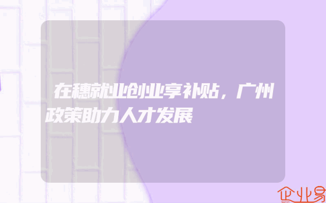 - 在穗就业创业享补贴,广州政策助力人才发展