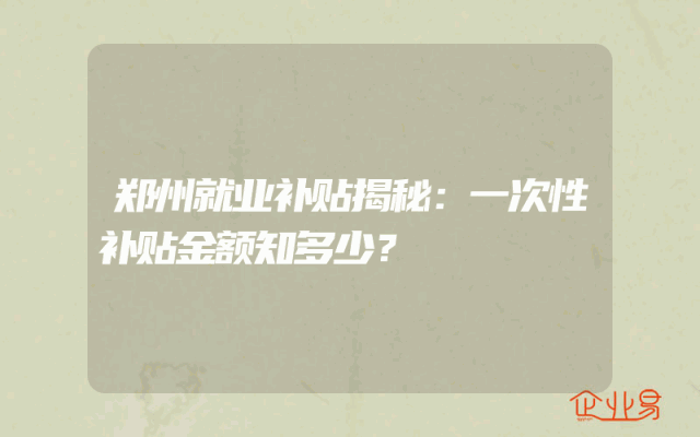 - 郑州就业补贴揭秘:一次性补贴金额知多少?
