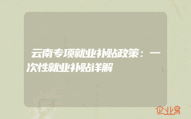 - 云南专项就业补贴政策:一次性就业补贴详解