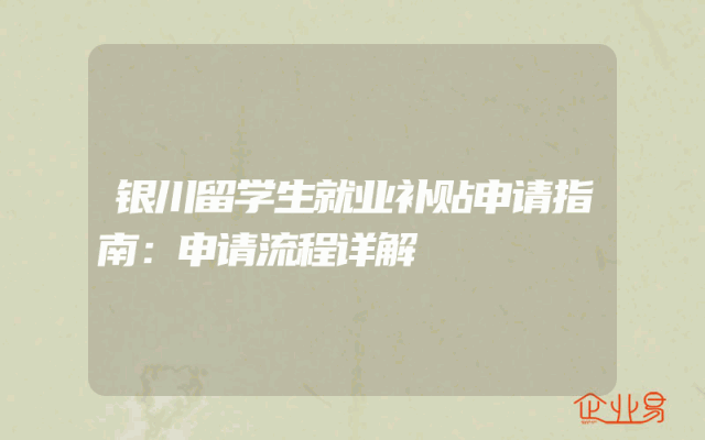 - 银川留学生就业补贴申请指南:申请流程详解