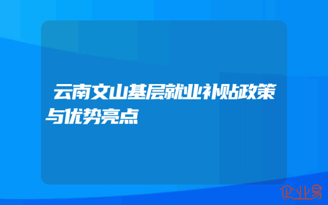 - 云南文山基层就业补贴政策与优势亮点