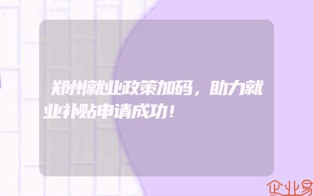 - 郑州就业政策加码,助力就业补贴申请成功!