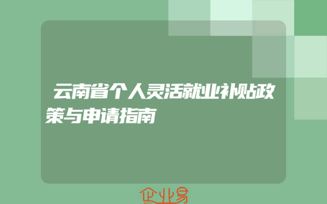 - 云南省个人灵活就业补贴政策与申请指南