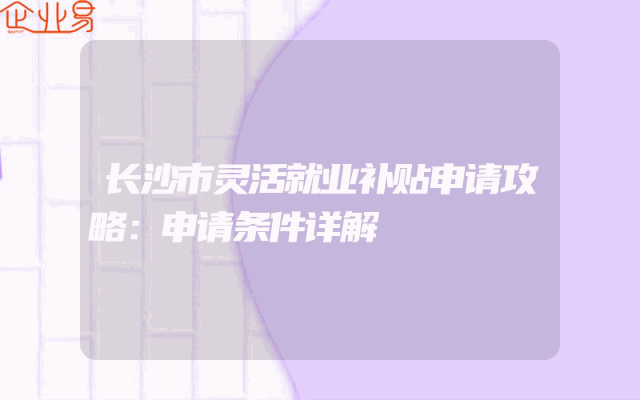 - 长沙市灵活就业补贴申请攻略:申请条件详解