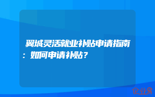 - 翼城灵活就业补贴申请指南:如何申请补贴?