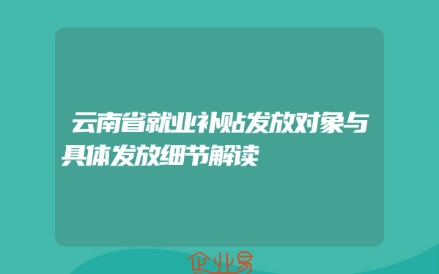 - 云南省就业补贴发放对象与具体发放细节解读