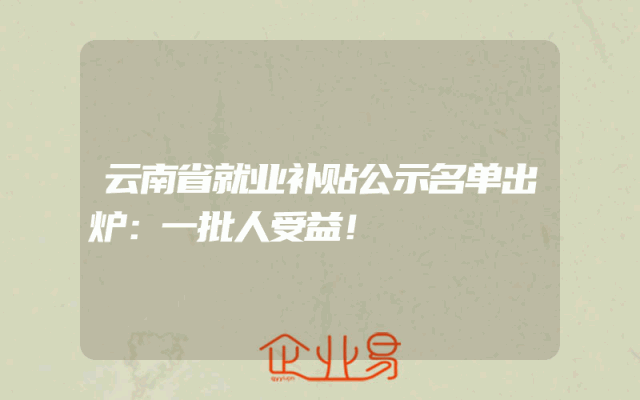 - 云南省就业补贴公示名单出炉:一批人受益!