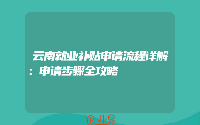 - 云南就业补贴申请流程详解:申请步骤全攻略