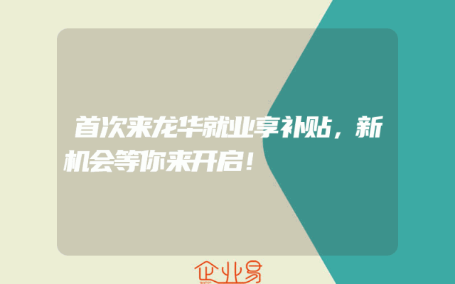 - 首次来龙华就业享补贴,新机会等你来开启!