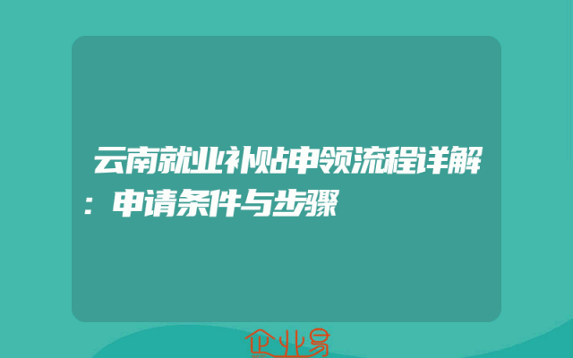 - 云南就业补贴申领流程详解:申请条件与步骤