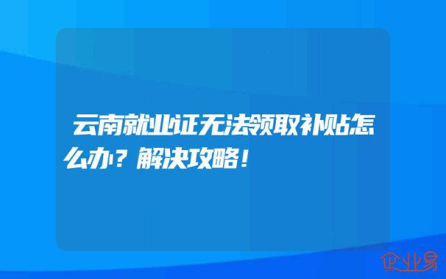 - 云南就业证无法领取补贴怎么办?解决攻略!