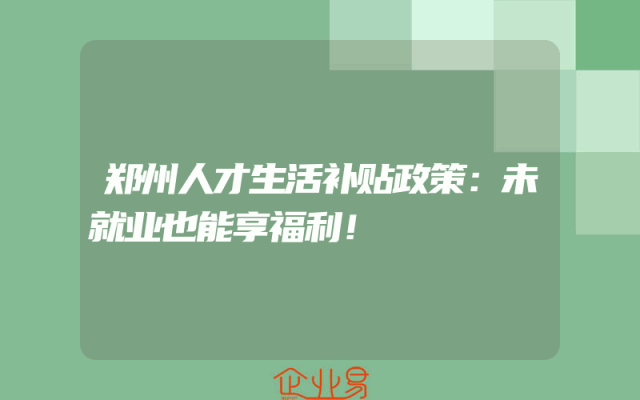 - 郑州人才生活补贴政策:未就业也能享福利!