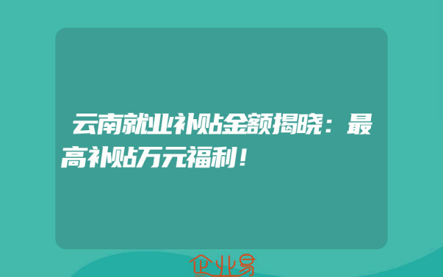 - 云南就业补贴金额揭晓:最高补贴万元福利!