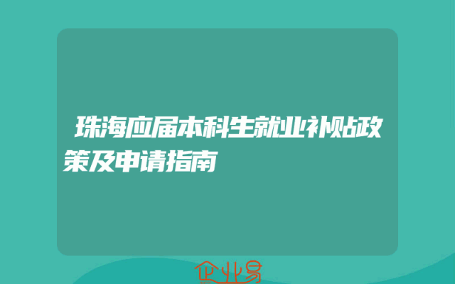 - 珠海应届本科生就业补贴政策解析及申请指南一、珠海应届本科生就业补贴政策概述珠海市为了吸引和留住优秀应届本科生,推出了一系列的就业补贴政策。这些政策旨在减轻应届毕业生就业压力,鼓励企业在人才培养方面的投入,同时也为本地经济社会发展提供了源源不