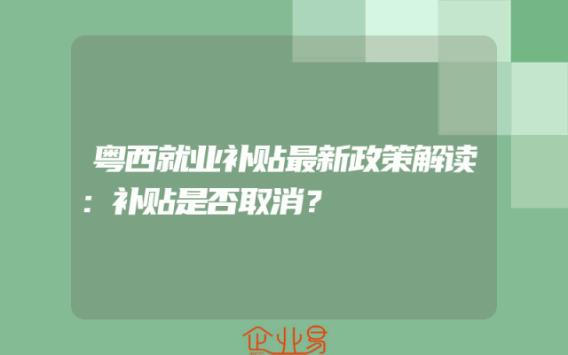 - 粤西就业补贴最新政策解读:补贴是否取消?