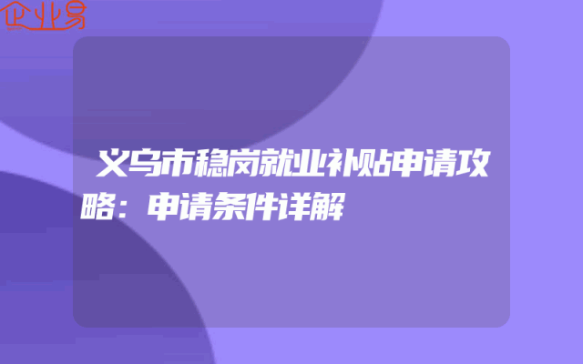 - 义乌市稳岗就业补贴申请攻略:申请条件详解