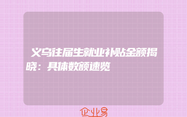 - 义乌往届生就业补贴金额揭晓:具体数额速览