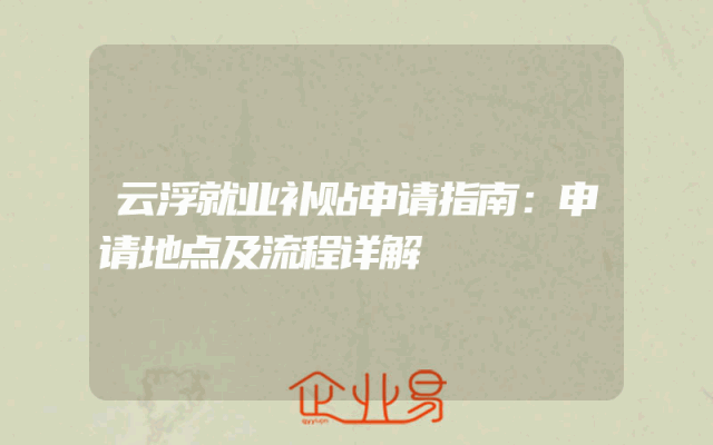 - 云浮就业补贴申请指南:申请地点及流程详解