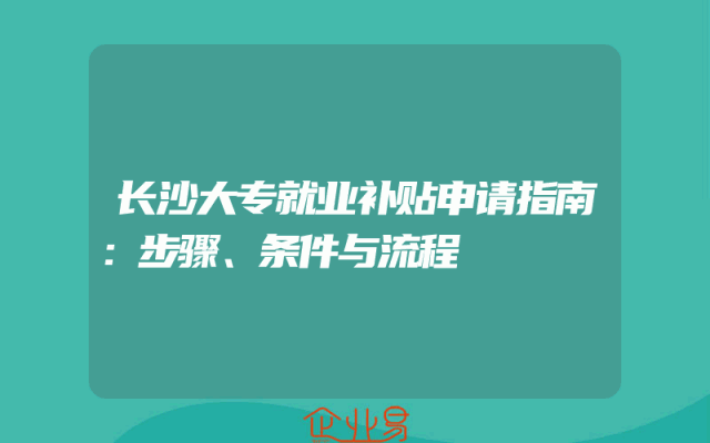 - 长沙大专就业补贴申请指南:步骤、条件与流程