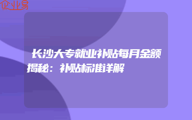 - 长沙大专就业补贴每月金额揭秘:补贴标准详解