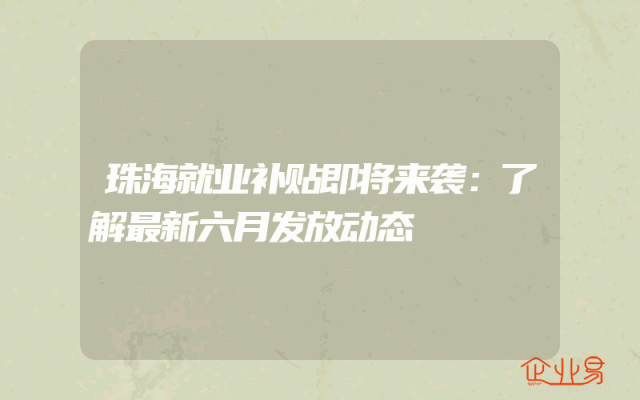 - 珠海就业补贴即将来袭:了解最新六月发放动态