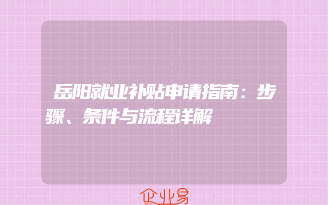 - 岳阳就业补贴申请指南:步骤、条件与流程详解