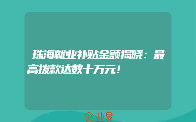 - 珠海就业补贴金额揭晓:最高拨款达数十万元!