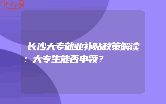 - 长沙大专就业补贴政策解读:大专生能否申领?