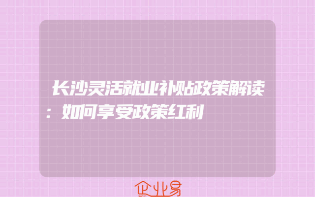 - 长沙灵活就业补贴政策解读:如何享受政策红利