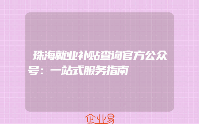 - 珠海就业补贴查询官方公众号:一站式服务指南