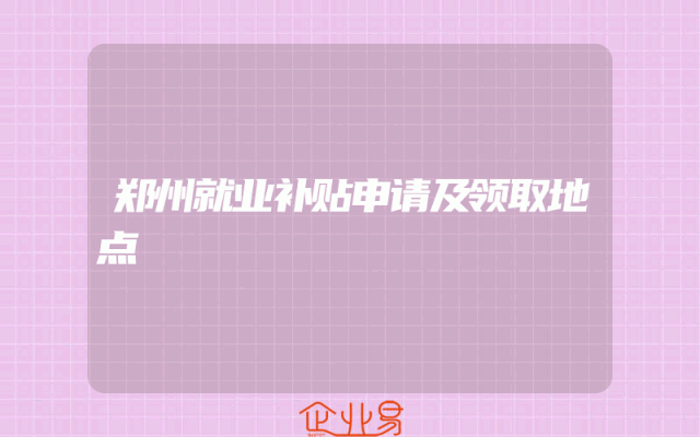 - 郑州就业补贴申请及领取地点