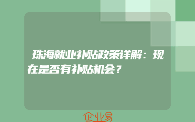 - 珠海就业补贴政策详解:现在是否有补贴机会?