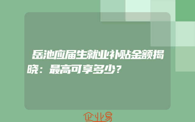 - 岳池应届生就业补贴金额揭晓:最高可享多少?