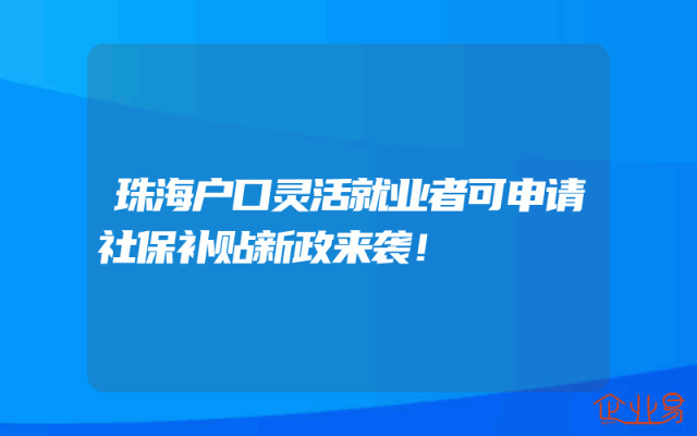 - 珠海户口灵活就业者可申请社保补贴新政来袭!