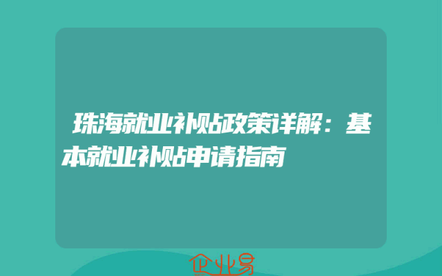 - 珠海就业补贴政策详解:基本就业补贴申请指南