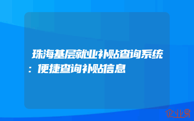 - 珠海基层就业补贴查询系统:便捷查询补贴信息