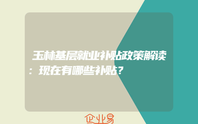 - 玉林基层就业补贴政策解读:现在有哪些补贴?
