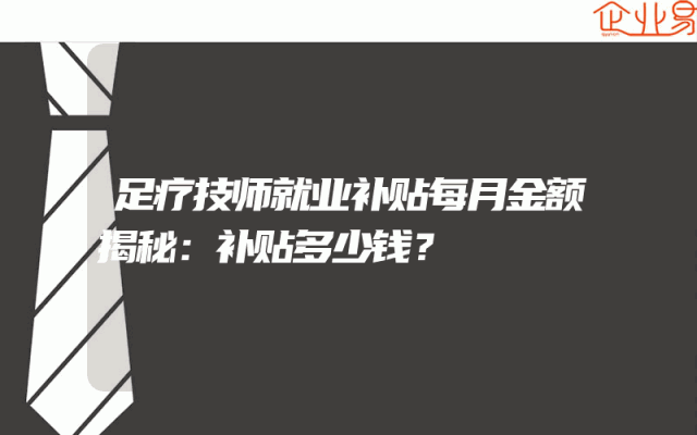 - 足疗技师就业补贴每月金额揭秘:补贴多少钱?