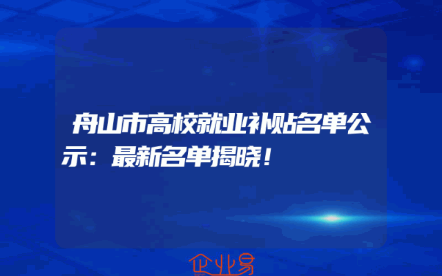 - 舟山市高校就业补贴名单公示:最新名单揭晓!