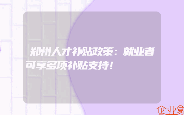- 郑州人才补贴政策:就业者可享多项补贴支持!
