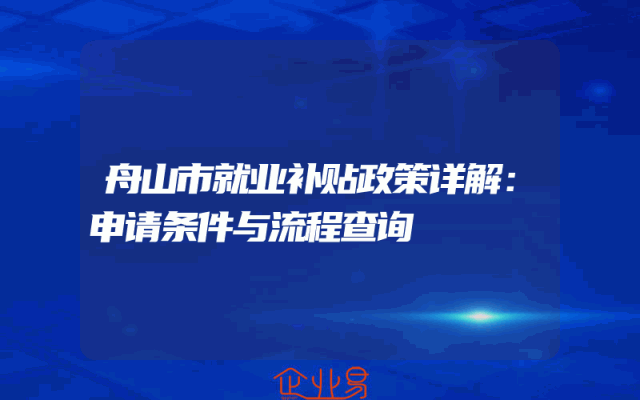 - 舟山市就业补贴政策详解:申请条件与流程查询