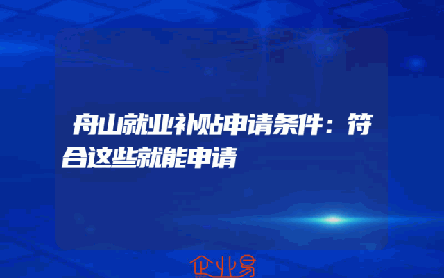 - 舟山就业补贴申请条件:符合这些就能申请