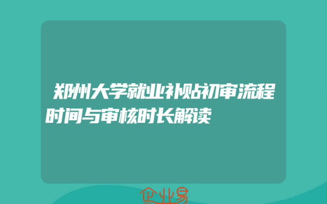 - 郑州大学就业补贴初审流程时间与审核时长解读