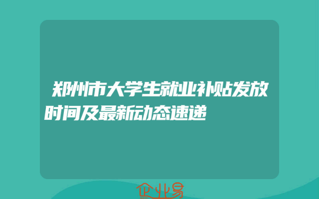 - 郑州市大学生就业补贴发放时间及最新动态速递