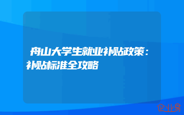 - 舟山大学生就业补贴政策:补贴标准全攻略